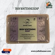 ஸ்கின் வைட்டனிங் சோப் என்பது சருமத்தை பளபளப்பாக மாற்றும் சிறப்பு மூலிகை சோப் ஆகும். இதில் உள்ள ஆலிவ் எண்ணெய், தேங்காய் எண்ணெய், கஸ்தூரி எண்ணெய் ஆகியவை சருமத்தை மென்மையாகவும் ஈரப்பதமாகவும் வைத்திருக்க உதவுகின்றன.
